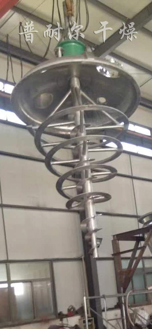 羧甲基纖維鋰螺帶真空干燥機是一種利用螺帶將物料旋轉提升及圓錐夾套、空心螺帶內同時通入傳熱介質(如熱水、導熱油、蒸汽等),使加熱后物料從四周提升并從中間下落,快速不斷的循環翻轉,并通過筒體內抽真空將水汽及時帶走, 使物料在短時間內達到干燥和混合目的。與傳統的立式混合機相比,筒體內無任何傳動機構,從根本上杜絕因潤滑油泄漏而導致物料污染,運行可靠穩定,特別適宜衛生要求高的粉料、顆粒混合;同時也適用于粘性流體或稠狀、濕狀為主物料的攪拌混合;與其它臥式干燥機相比,具有出料方便,可以100%完全出料,操作、維修方便。它的干燥效率是同等規格“雙錐回轉真空干燥機”3-5倍。